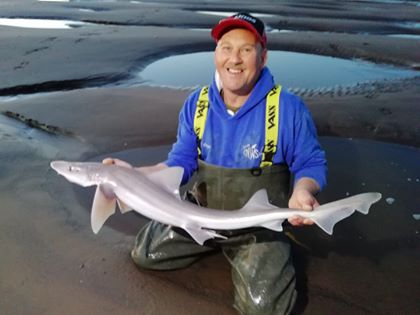 Probably the most exciting species to start patrolling our beaches in the past few years is the smoothound. This turbo powered species shows up on numerous beaches from the south to the north of the county. No longer a fish that you have to travel outside the county to catch. As soon as the crabs start moulting they appear, providing excellent sport with big double figure fish being a common feature on our beaches. Anglers have had some good numbers particularly around the Drigg and Silloth beaches. Nigel Pape’s 16lbs 10oz smoothound pictured below was caught in a 11 fish session in the summer of 2019, where he caught three other double figured fish the next best being 15lbs 4oz. Nigel quoted: “It was a session of a lifetime”. You bet it was Nigel, fantastic fishing!