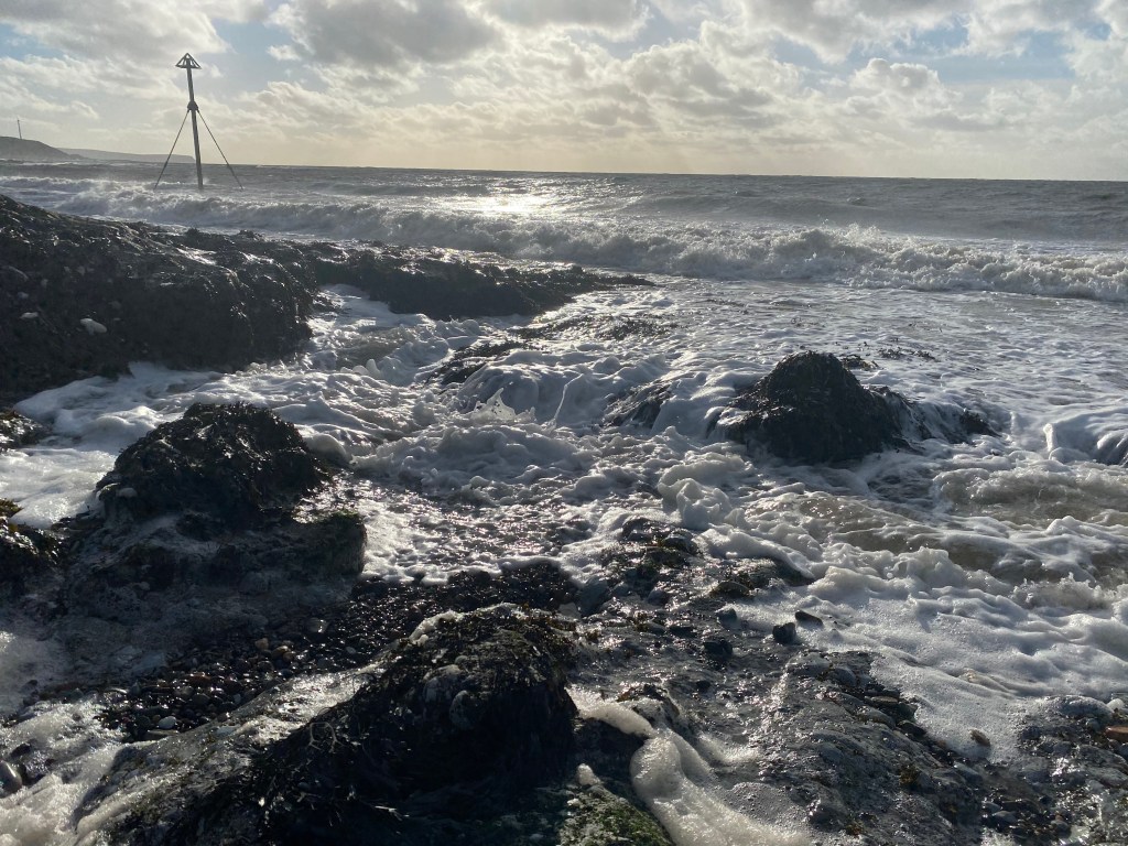 The first two hours or so, with a receding tide against the wind produced waves that were being whipped into a white surf rolling over the rocks. Most anglers found they were able to hold bottom, as long as a piece of weed did not latch onto their line and drag their grip leads out of the seabed.